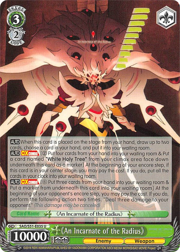 View full details!["An Incarnate of the Radius" (SAO/S51-E035 U) [Sword Art Online The Movie: -Ordinal Scale-]](http://tcg.irresistibleforce.com.au/cdn/shop/products/96e19449-5284-59cb-8325-2118d5a3e0de_01debcc4-cc50-49ef-9fad-94547df2fdfc.jpg?v=1695010685&width=1445)