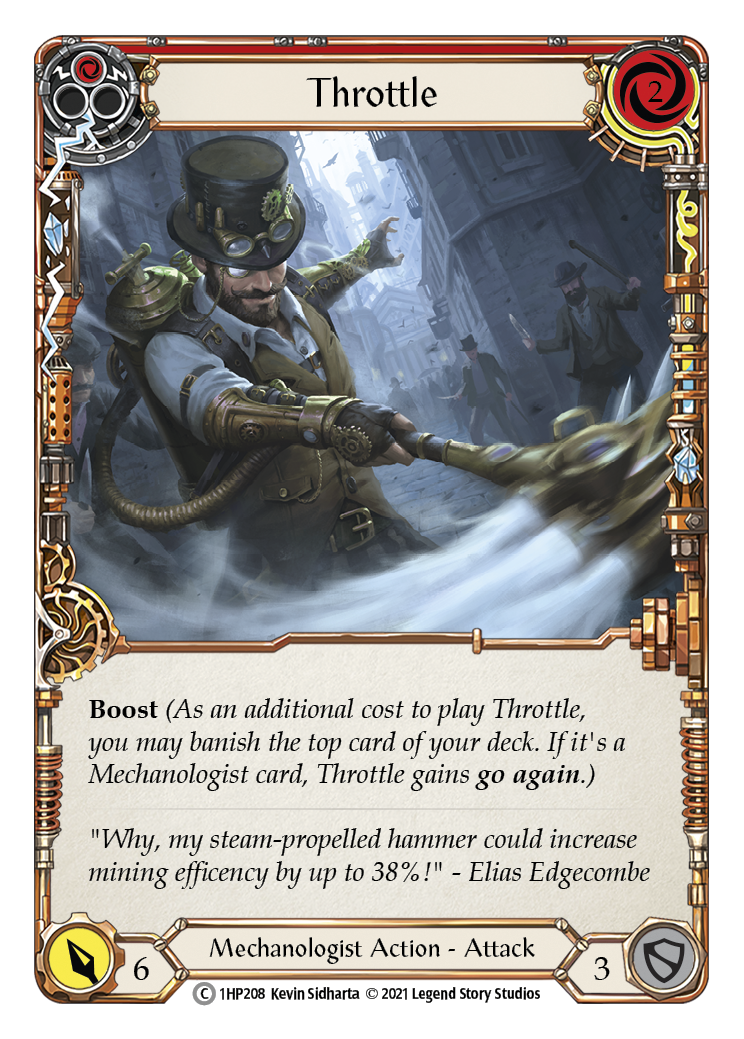 Boost (As an additional cost to play Throttle, you may banish the top card of your deck. If it's a Mechanologist card, Throttle gains go again.)